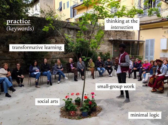 El hacer no se separa del pensar ni del sentir. Nuestra práctica es encarnada: sostenemos dispositivos donde el conocimiento emerge del encuentro, de la experimentación compartida, del acto concreto en contextos relacionales vivos.